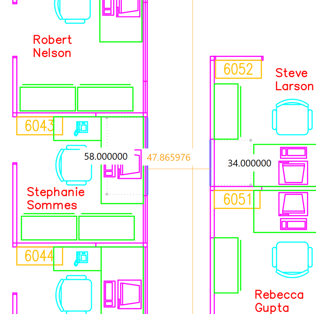 距離を素早く測定するには、DIST[距離計算]コマンドを使用できます。このコマンドは MEASUREGEOM コマンドに含まれていますが、単に2つのオブジェクト間の距離を素早く知りたい場合もあります。正確な距離を測定するために、OSNAP(オブジェクト スナップ)を忘れずに使用してください。