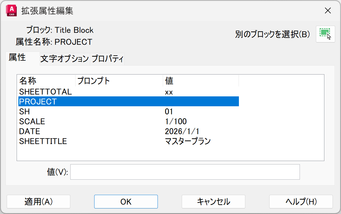 ここでひとつヒントです。[拡張属性編集]ダイアログ ボックスで表示される属性の順序に、不便さを感じたことはありませんか?下の画像の例では、PROJECT を一番上に配置し、他の項目をグループ化した方が分かりやすい場合もあるでしょう。