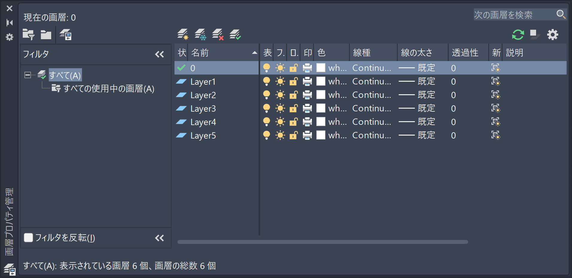 たとえば、次のように画層が定義されているとします。