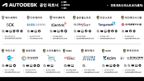 오토데스크 공인 파트너사를 통해서 제품을 구매할 수 있습니다. 지역별 파트너사는 아래 '공인 파트너 찾기' 버튼을 통해 확인 가능합니다.