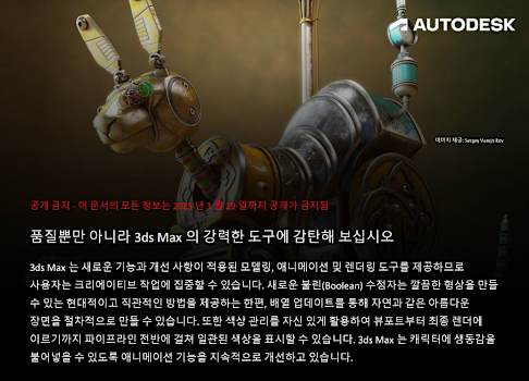 게임 및 실감형 콘텐츠 제작을 위해 3ds Max 2024에 다양한 유틸리티 기능들이 강화되었습니다. Material Editor에 콘텐츠 제작을 지원하는 기능들이 업데이트 되었으며, Biped의 대표적인 문제점이 해결되었습니다. Array, OpenVDB 등 효율적이고 향상된 형태의 모델링 기능과 함께 퀄리티 높은 시각화 지원 기능들도 확인해보십시오.