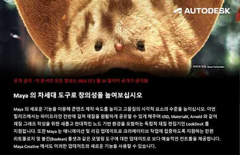 Maya의 새로운 기능을 이용해 콘텐츠 제작 속도를 높이고 고품질의 시각적 요소의 수준을 높이십시오.